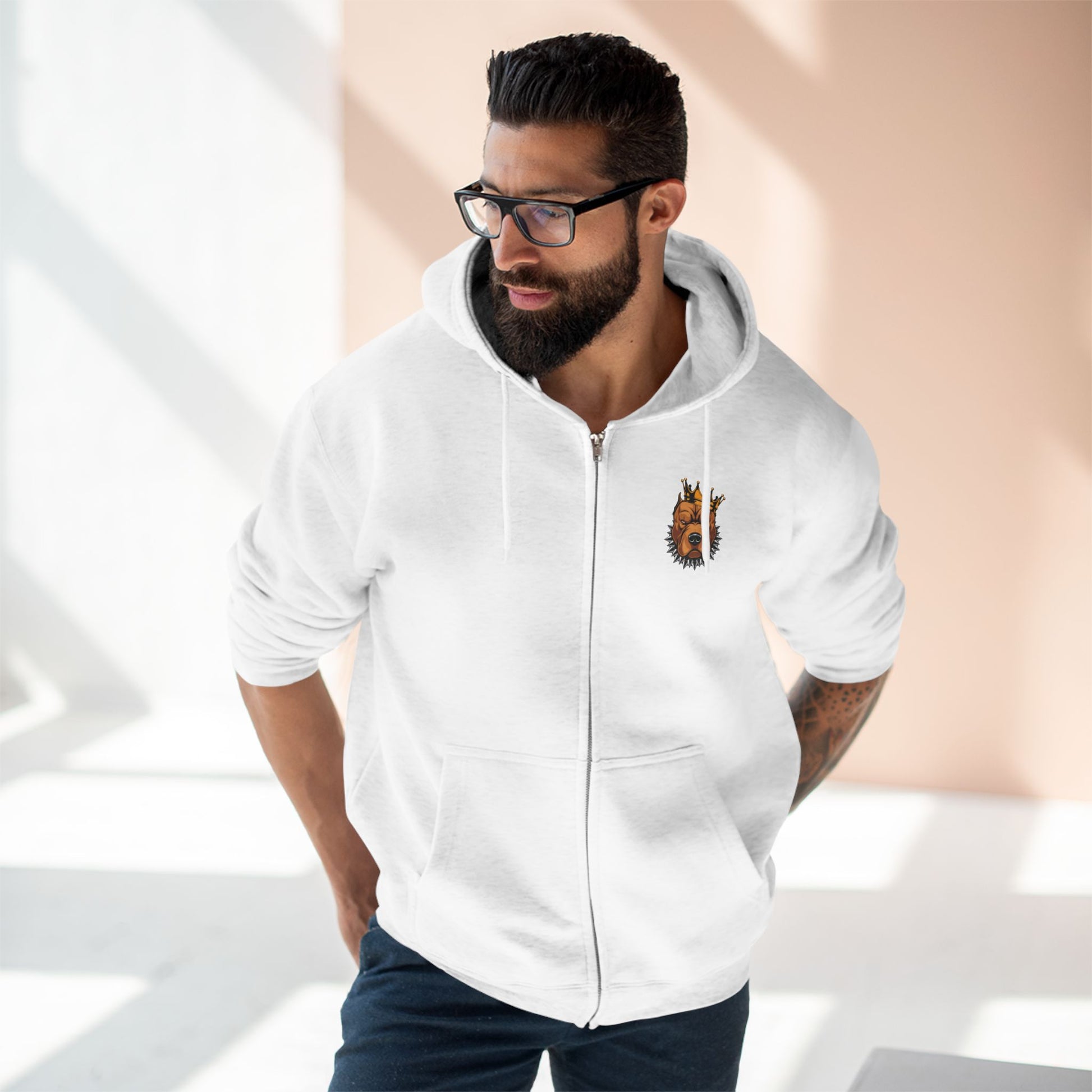 Wear it to show allegiance to a gritty, loyal aesthetic. It feels lived-in the moment you slip it on: heavy enough to block wind, soft enough to curl up in. The mix of detailed DTF chest and wrist prints with a DTG back image keeps the artwork crisp and vibrant, so the design stays sharp through washes. This is for people who like their style direct — a bit tough, unmistakably personal, and built to last.
