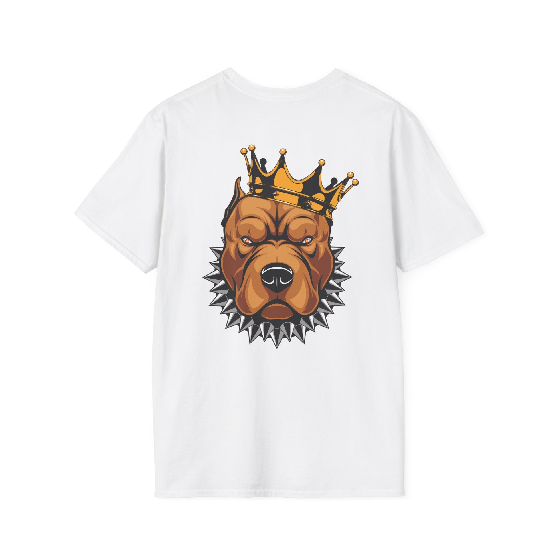 This lightweight cotton tee carries an attitude — bold yet wearable. The front shows a classic old-English wordmark, while the back features a crowned pitbull rendered with rich color and sharp detail. It sits clean and flat across the shoulders thanks to shoulder tape, holds its neckline shape with a ribbed collar, and comes in a smooth, print-ready fabric that feels soft against skin. Wear it layered under a denim jacket or alone when you want your style to speak with confidence and a little edge.
